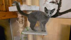 Leo on ensimmäinen venäjänsininen kissamme ja on yhä ainoa kissalassa asuva kolli. Leo on sylissä istumista rakastava leppoisa sylikissa, jonka saa vääntää vaikka umpisolmuun. Leo juoksee karkuun ovikellon ääntä, mutta tulee pian tervehtimään vieraita.